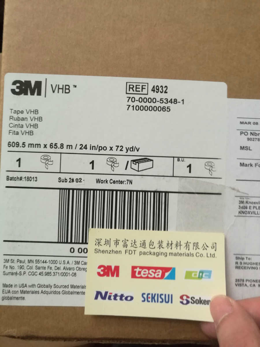 3M VHB超强粘性双面胶带的全丙烯酸结构,可以取代铆钉,螺丝及其他机械式固定,不仅可密封隔绝潮气及多数溶剂,更可长期抗紫外线及冷热循环,独特的泡绵可做为极佳的缓冲材料。不同于机械固定之点受力,VHB胶带能够平均分散受力,使用者得以使用较轻薄的材料而无材料变形,金属疲劳等问题。3M VHB高贴服性胶带还具备更多的特性:服贴性高,优异的填缝效果,独特的背胶亦适用于不同表面及低温施工使用。